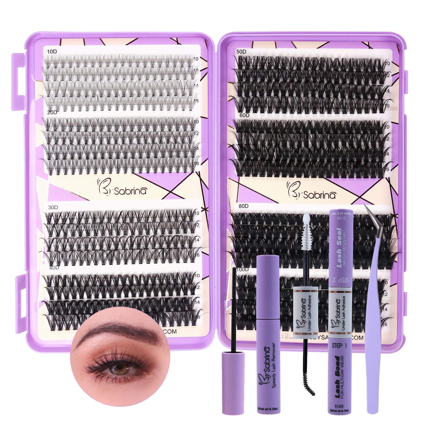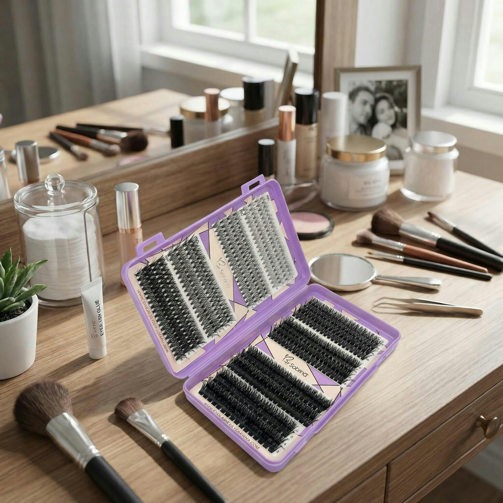 Introducing our 10D&20D&30D&40D&50D&60D&80D&100D DIY Cluster Lash Kit - your all in one at home lash extension solution. Available in natural C curl, this kit includes 640 lash clusters per tray in mixed lengths, plus bond & seal, applicator, and remover, giving you everything you need for bold, dramatic lashes.